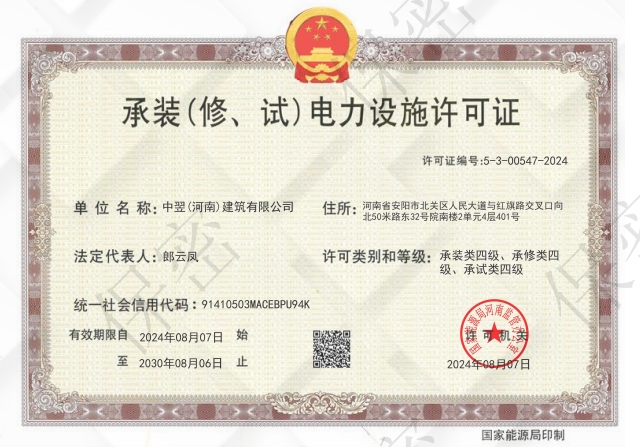 中翌(河南)建筑有限公司資質(zhì)范圍及等級(jí):